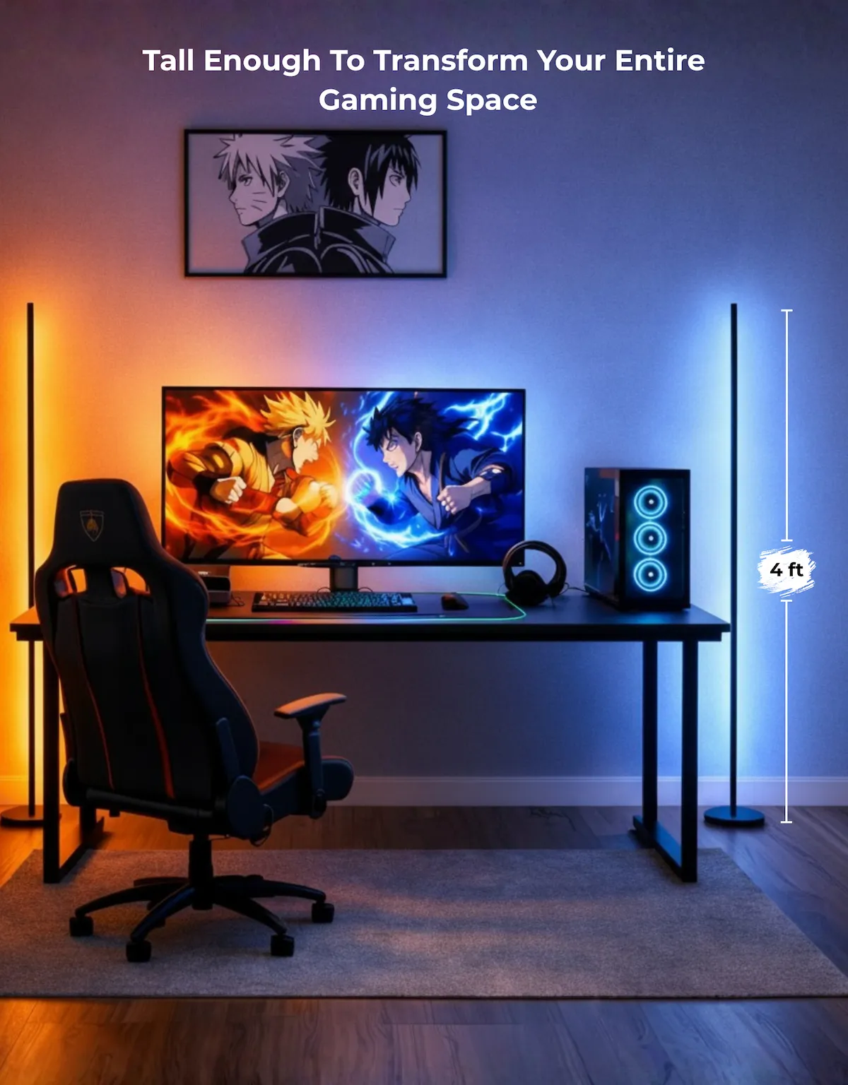 Tall 4-foot slim design delivers wide light coverage, perfect for placing beside monitors, desks, or gaming setups. -